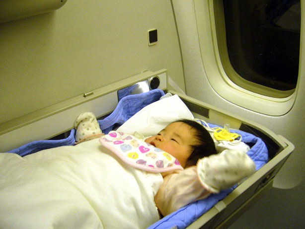 飛行機の中では簡易ベビーベッドを用意してくれました